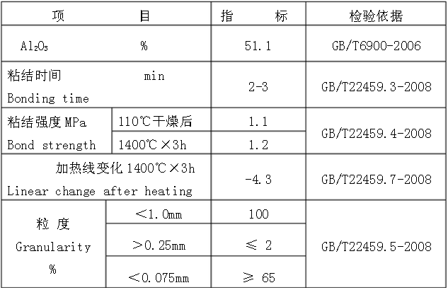 高溫耐火膠泥性能指標(biāo)
