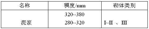 耐火泥漿調(diào)制的一般規(guī)定應(yīng)根據(jù)砌體類別,通過試驗確定泥漿的稠度和液體加入量,同時檢查泥漿的砌筑性能(粘結(jié)時間)是否滿足砌筑要求。泥漿的粘結(jié)時間視耐火制品的材質(zhì),外形尺寸的大小而定,宜為不大于2min為合適。不同泥漿選用的目數(shù)和稠度應(yīng)根據(jù)砌體的類別按下表選定。